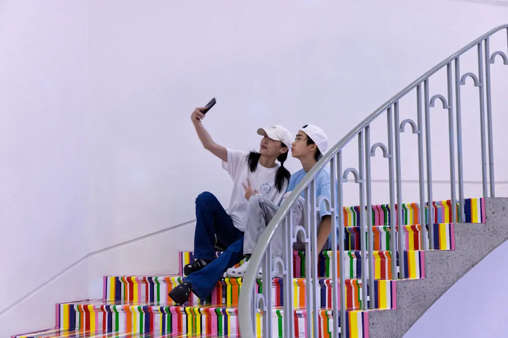 Visitors discover Jim Lambie: Zobop (Colour-Chrome), October 2025, Photo: Vancouver Art Gallery